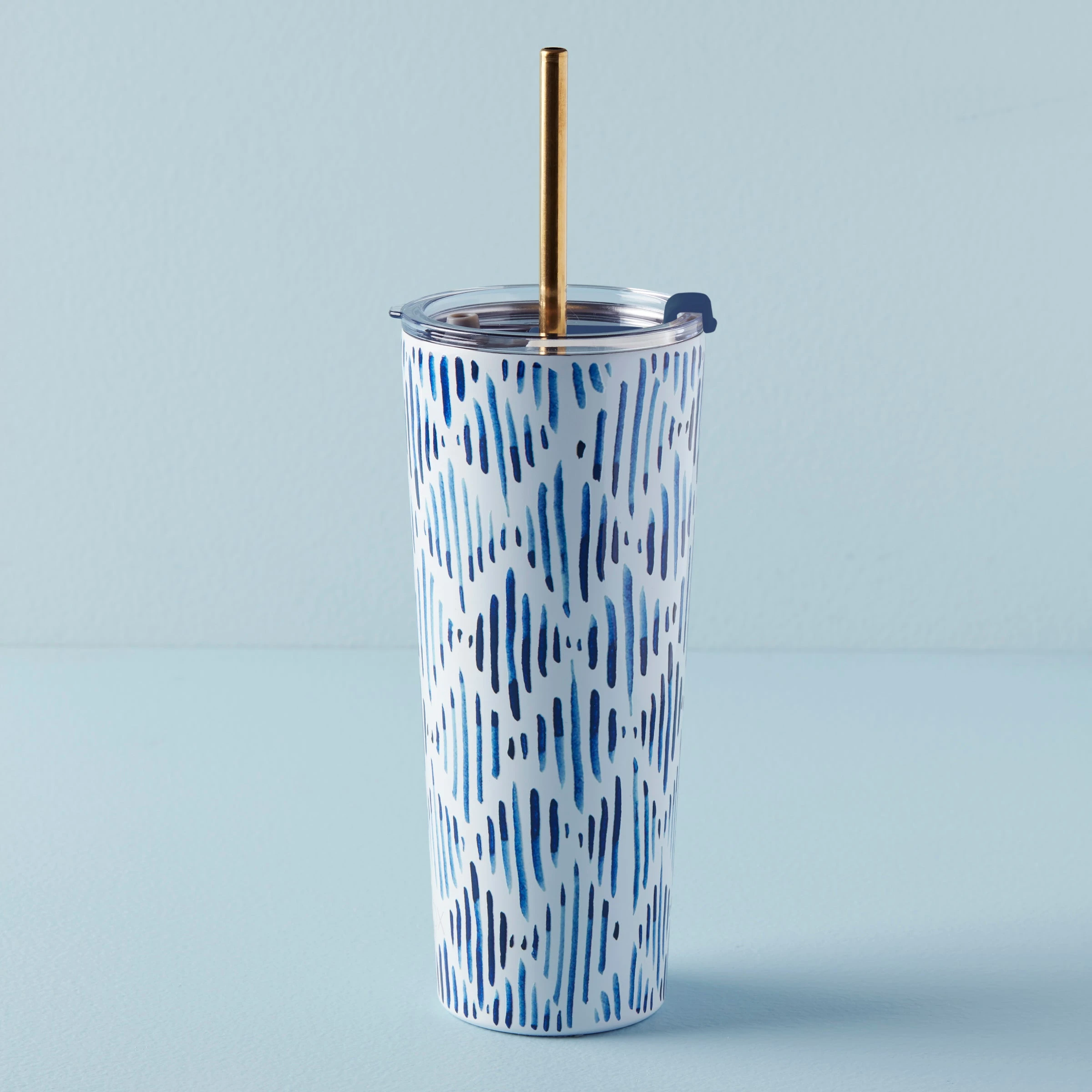 Lenox Blue Bay Ikat Stainless Steel Tumbler With Straw