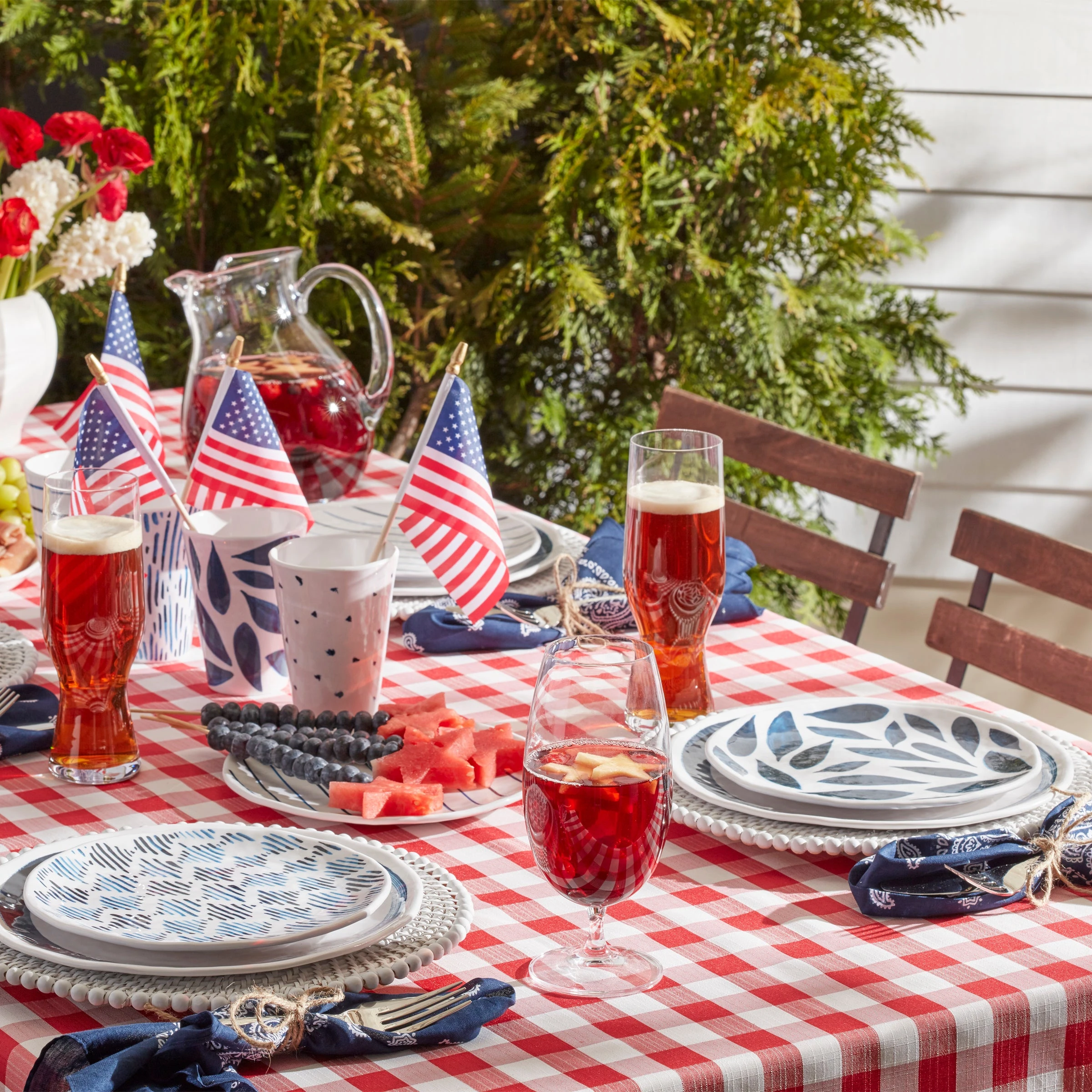 Organic shapes and artisanal designs merge flawlessly on these Blue Bay tumblers. Made from hardworking melamine, the lightweight set stands up to kids, poolside parties, and daily duty with carefree ease befitting boho style.