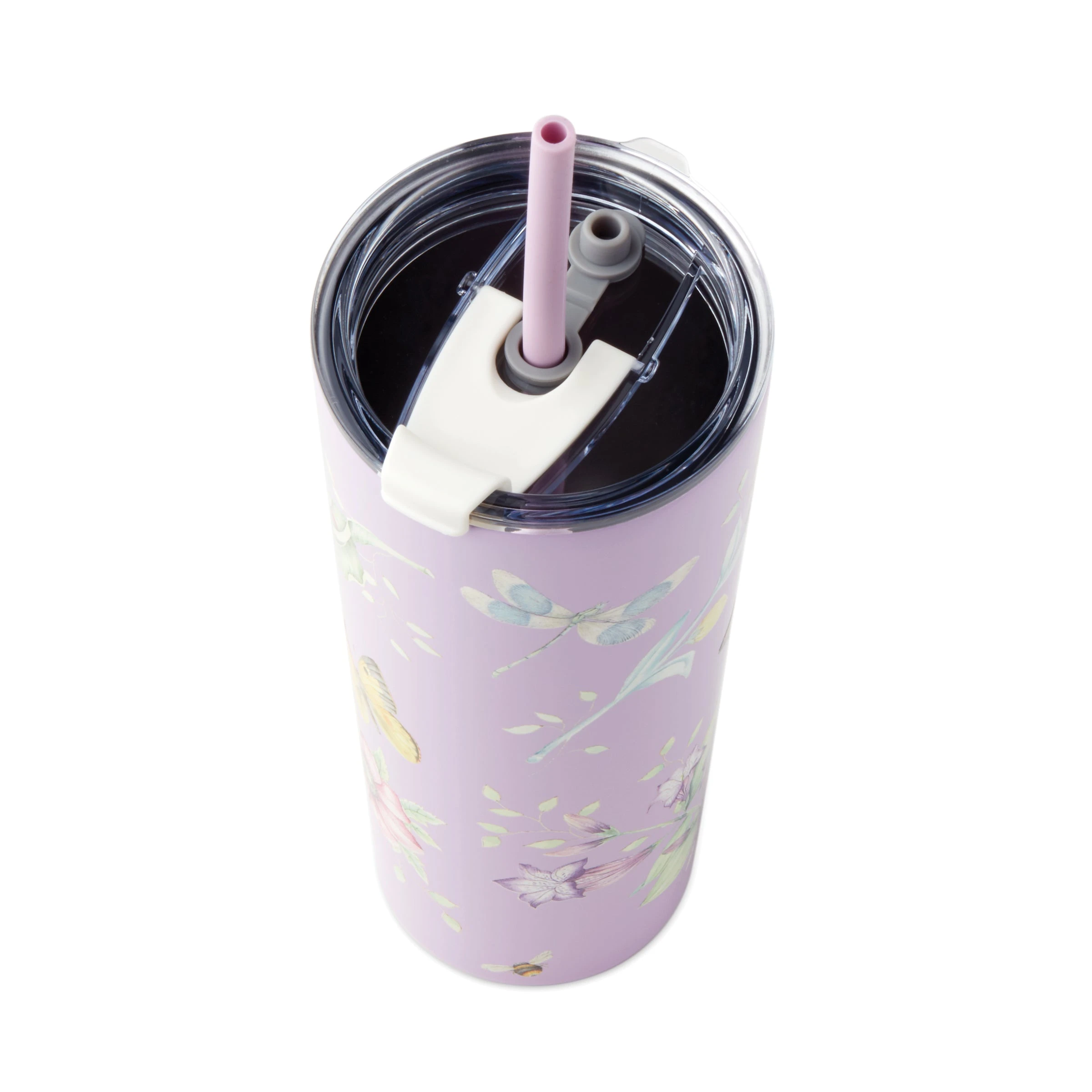 How refreshing! Detailed with a lavender Butterfly Meadow motif, this leak-resistant, sweatproof, shatter-resistant tumbler keeps you hydrated and stylish on the go. Featuring double-wall stainless steel construction and vacuum insulation, it keeps hot drinks hot and cold drinks cold for longer. Fitted, clear BPA-free lid and coordinated straw included.