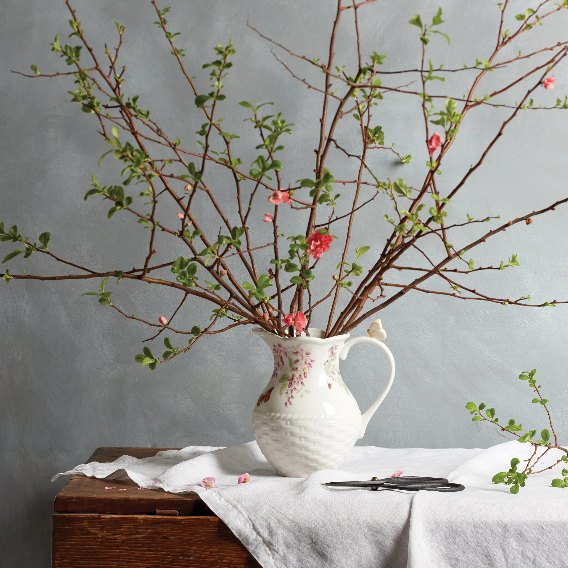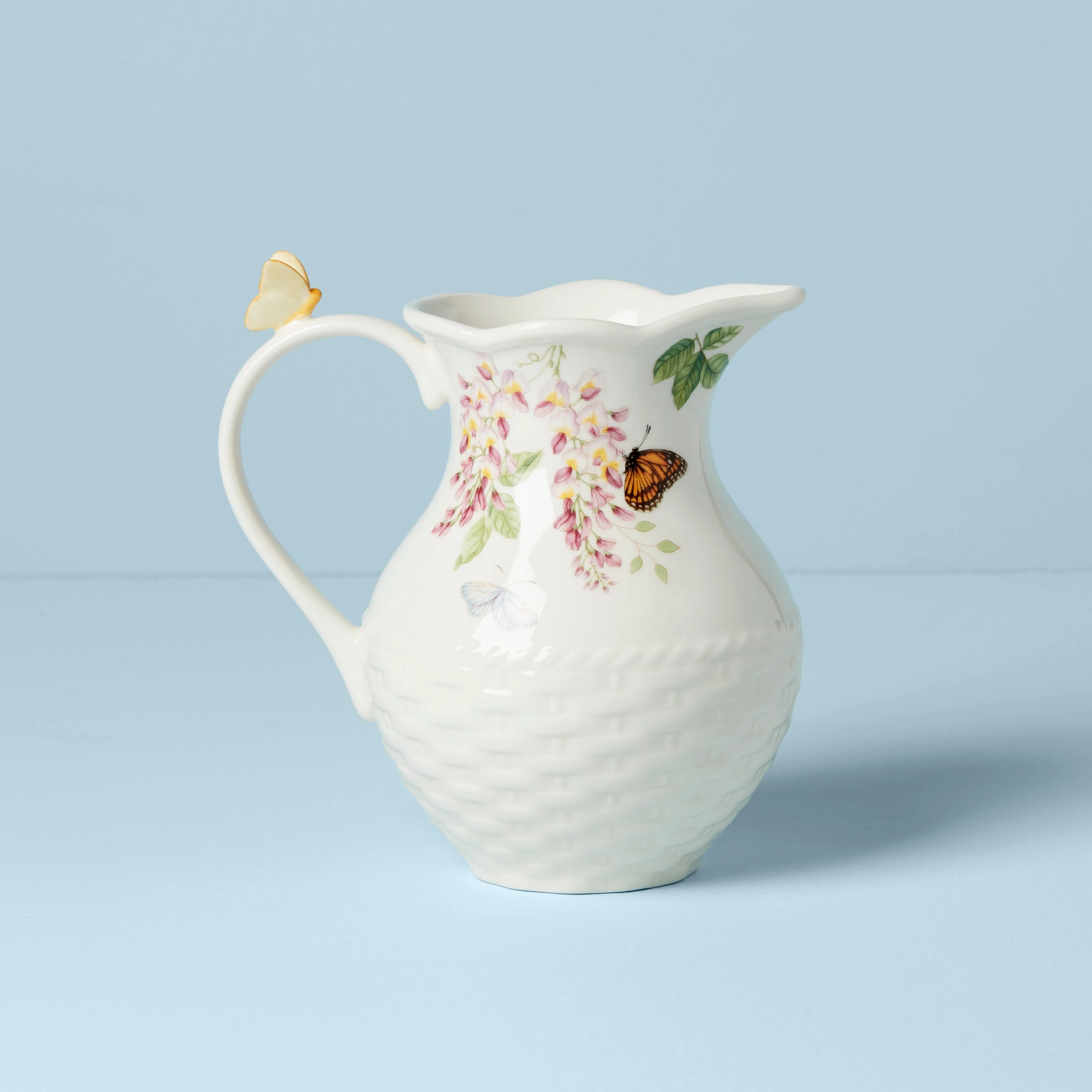 Picture this: a backyard barbecue. The sun on your shoulders. And a glass of iced tea gently poured from your new Butterfly Meadow pitcher. This piece is a little slice of springtime with its textured basketweave base, scalloped edge and little butterfly resting gently at the curved handle. It’s crafted of weighty porcelain that will not chip or break and designed in our Butterfly Meadow motif of florals and butterflies. In short: it’s a can’t-miss piece you need for the season.