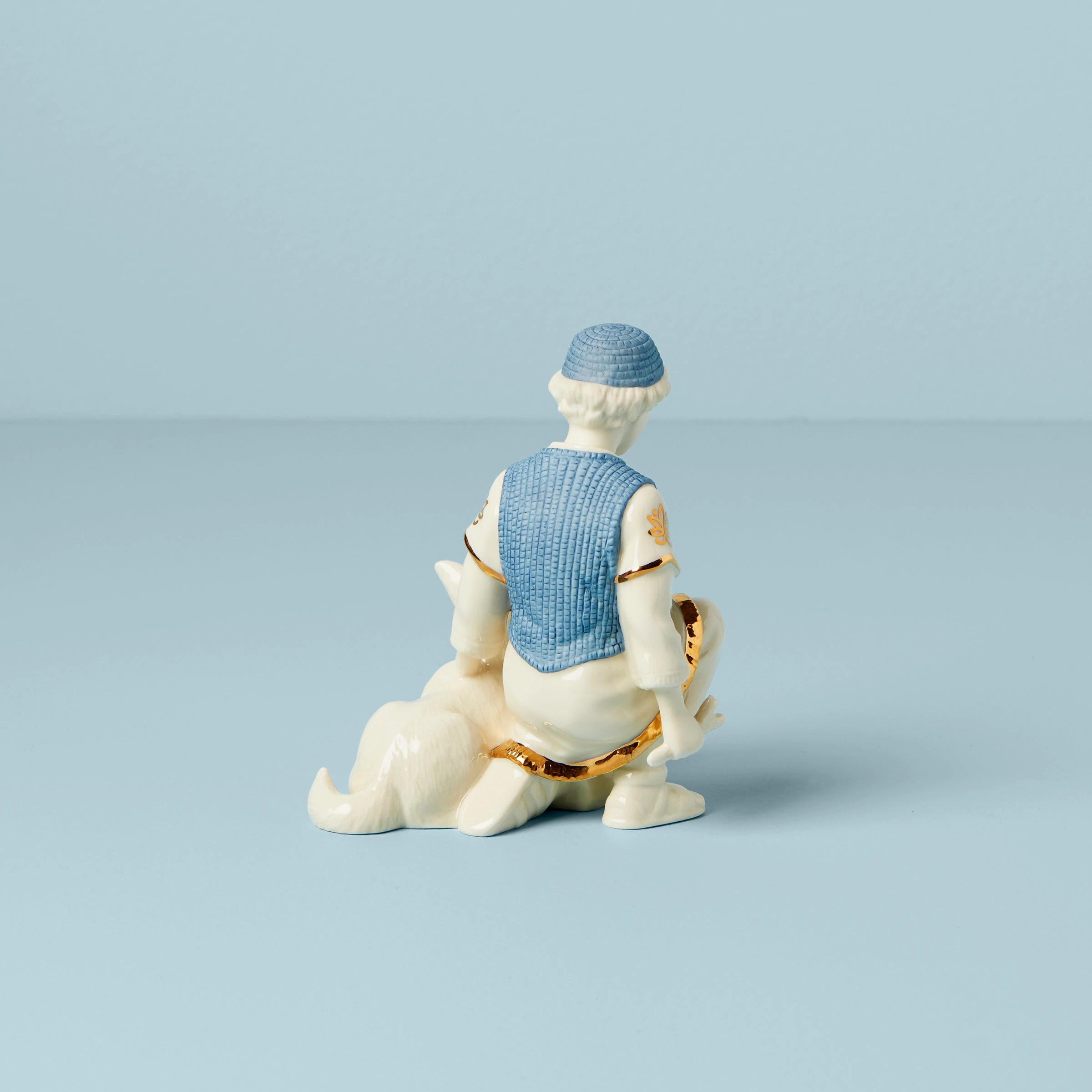 This pristine ivory ceramic figurine features a shepherd boy in a turquoise vest and hat kneeling next to his loyal companion.The First Blessing Nativity Shepherd & Dog Figurine is a detailed addition to any nativity scene and features elegant 24-karat gold accents.