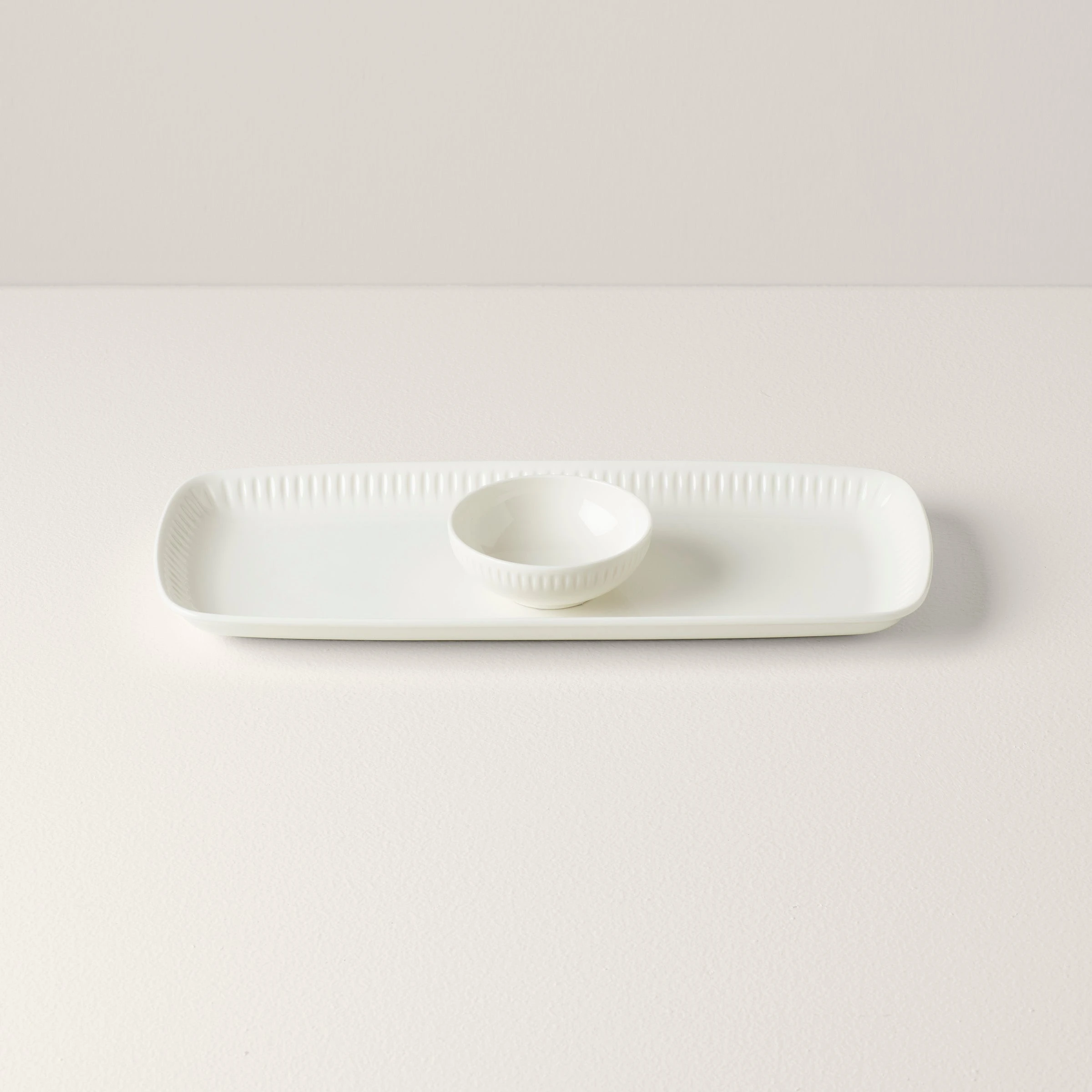 Set out chips, dip and other appetizers on this tray and bowl set from our Profile collection. Crafted of pristine white porcelain, it’s designed to be the classic serveware starter set every home or apartment needs for hosting!