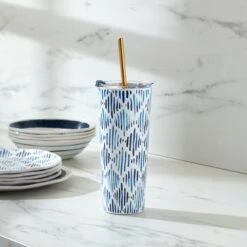 Lenox Blue Bay Ikat Stainless Steel Tumbler With Straw