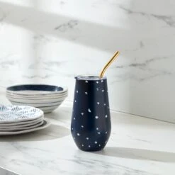 Lenox Blue Bay Dot Stainless Steel Wine Tumbler & Straw